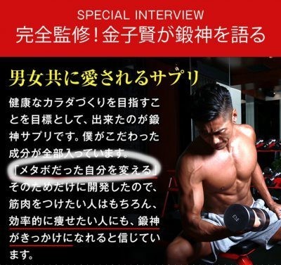 筋肉の美しさを競う某ボディコンテストでも優勝経験がある金子賢さんが監修し、自らも愛用する「鍛神」。
